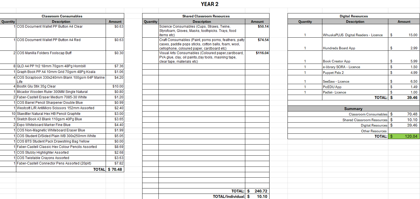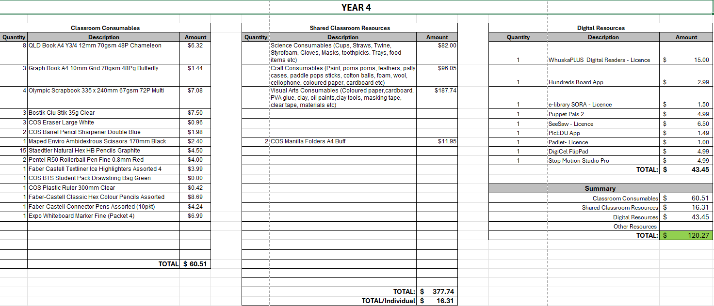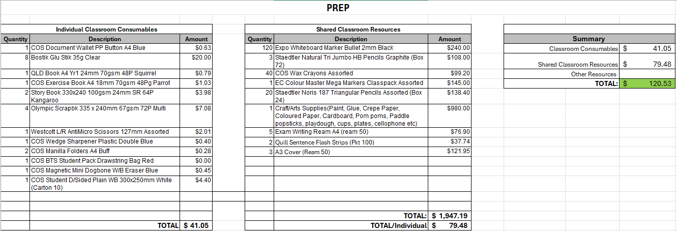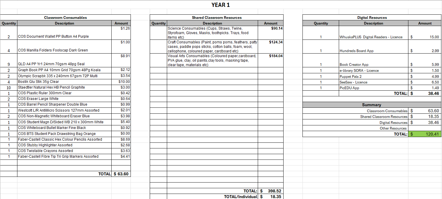 Spring Mountain State School operates a full Student Resource Scheme (SRS). This will be a significant cost saving for our families as we are able to buy in bulk. It is also equitable, with all students having the same items. For our teachers, it means that students all have the quality items that are the same, making classroom organisation easier.